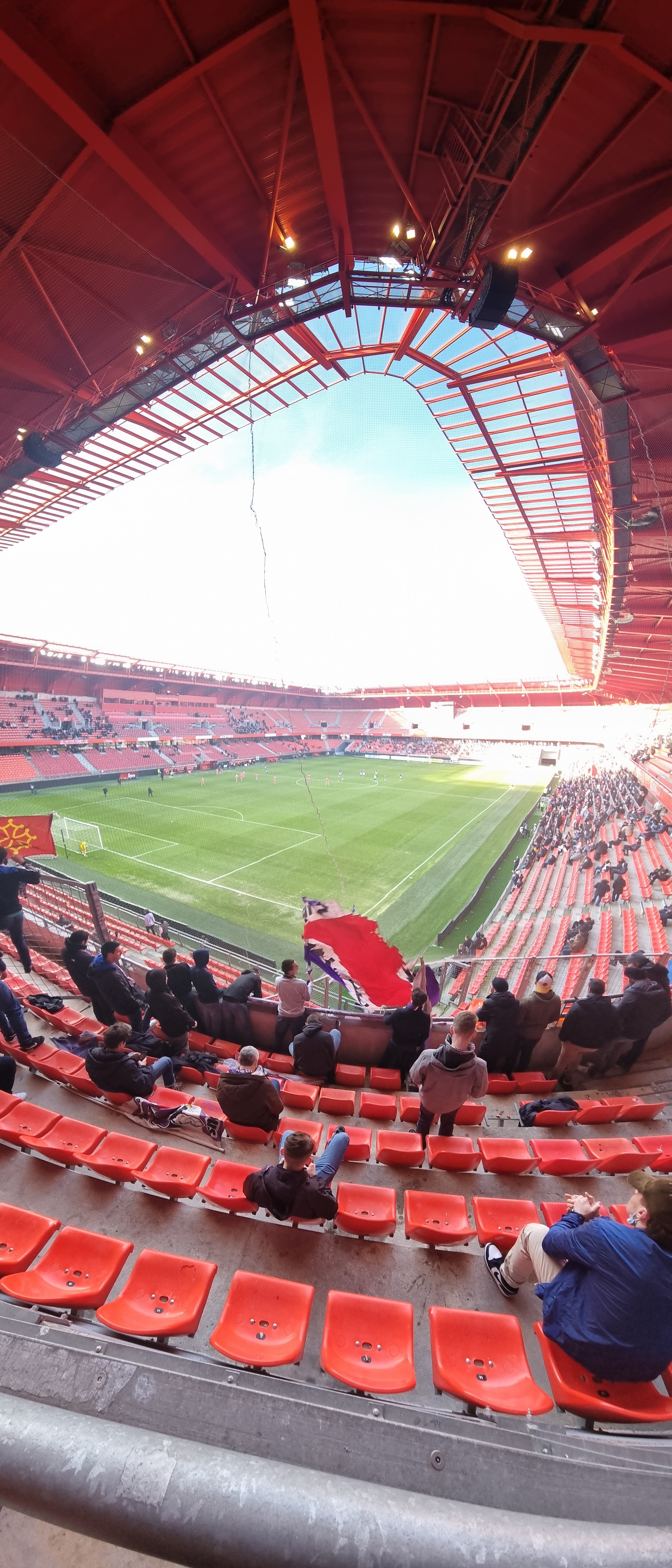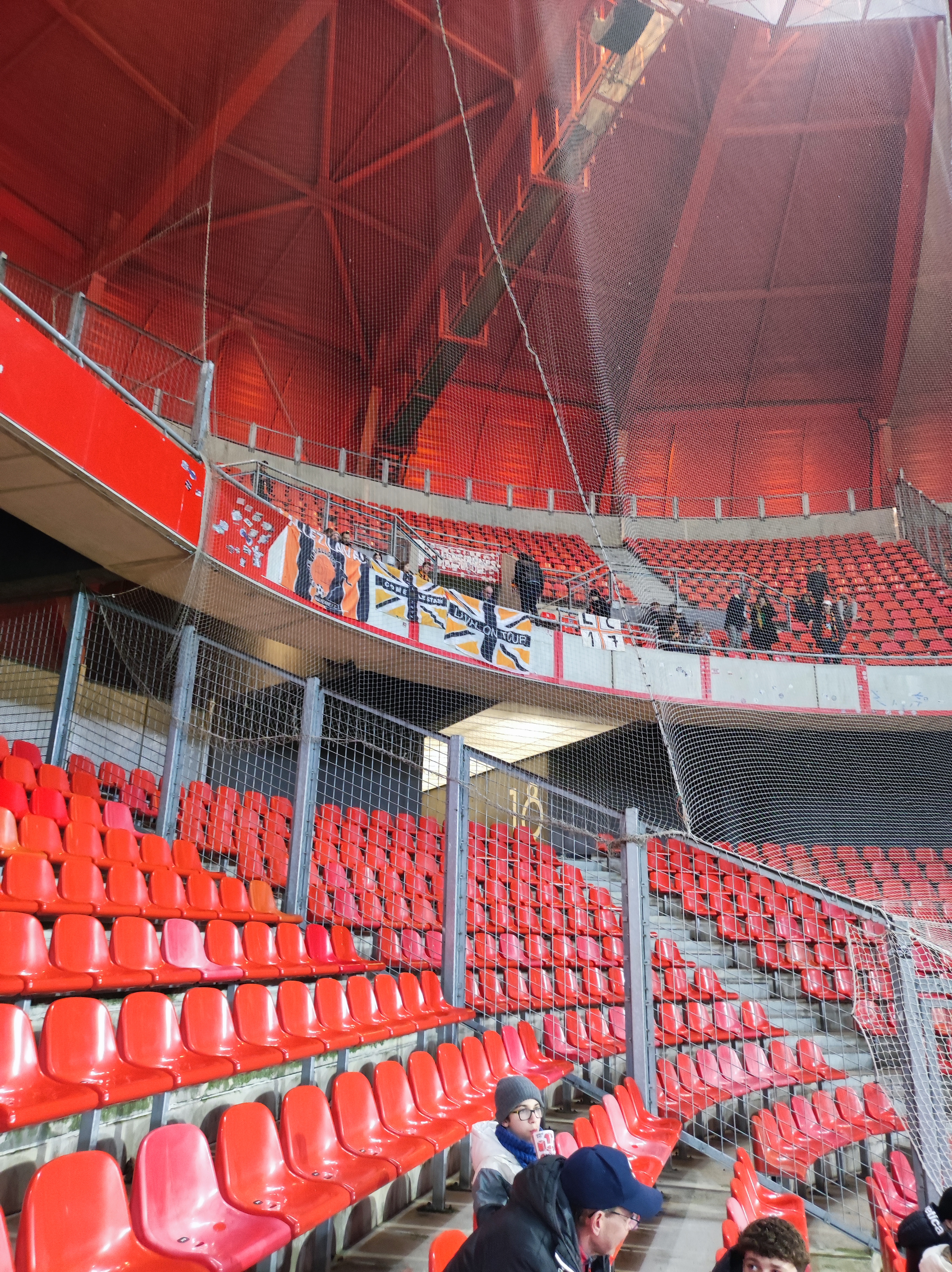 Très beau stade et super bonne ambiance mais le parquage visiteur est tristounet avec un grand filet qui empêche de voir le match…dommage