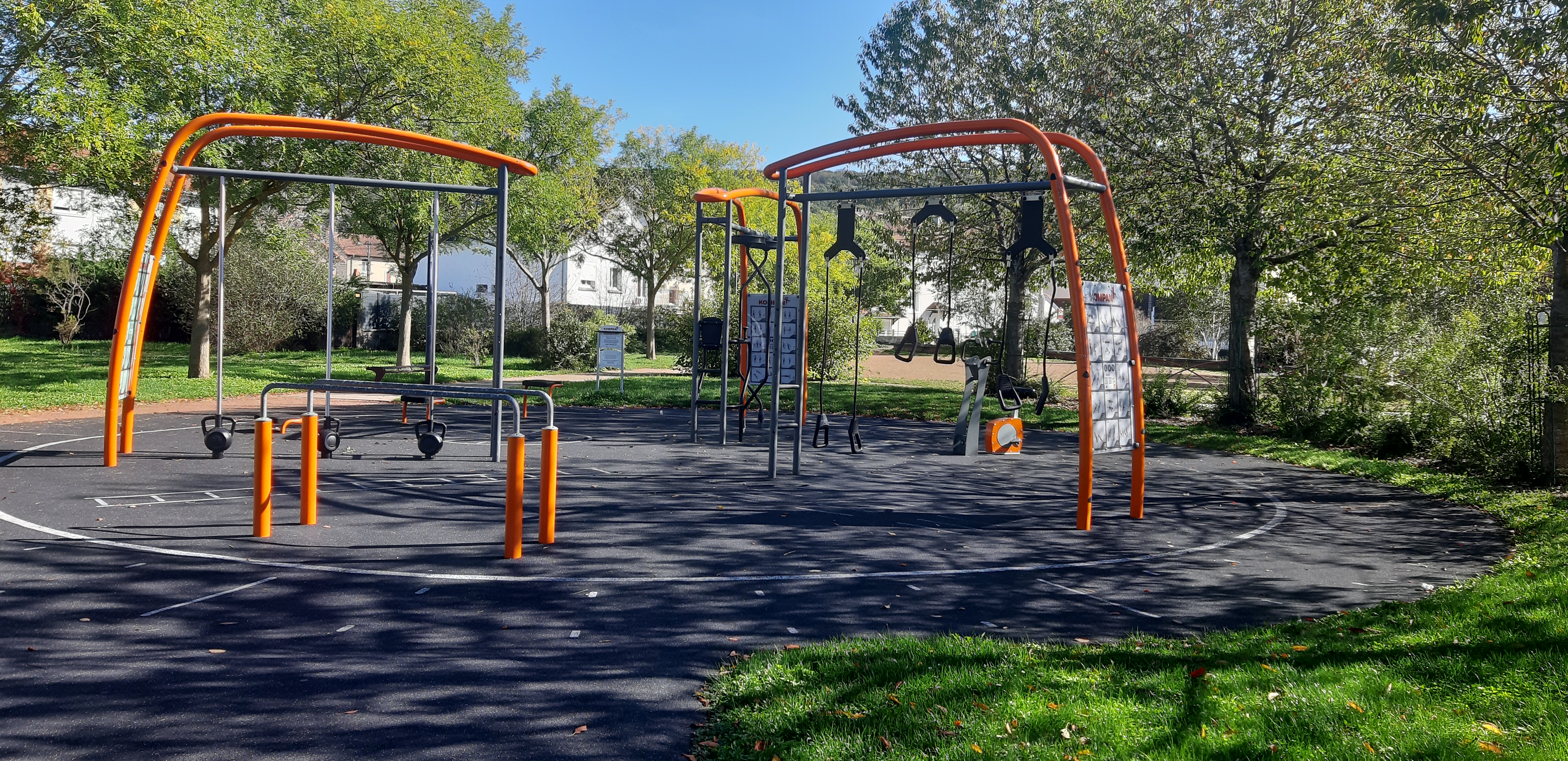 Fantastique centre sportif extérieur, soigné et bien équipé pour ceux qui veulent faire du fitness sous le soleil et dans la verdure. De la salle de sport avec câbles trx et vélos d'exercice et autres équipements pour les abdominaux, les bras et les épaules, à la piste de skateboard, en passant par le terrain de sport avec piste d'athlétisme ! À ne pas manquer si vous souhaitez garder la forme même pendant vos vacances !